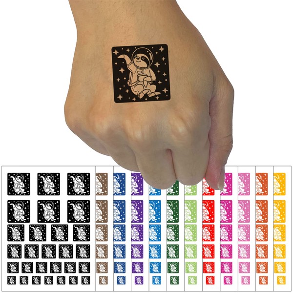 Sloth Astronaut Floating in Space Temporary Tattoo Water Resistant Fake Body Art Set Collection - Black (One Sheet)
