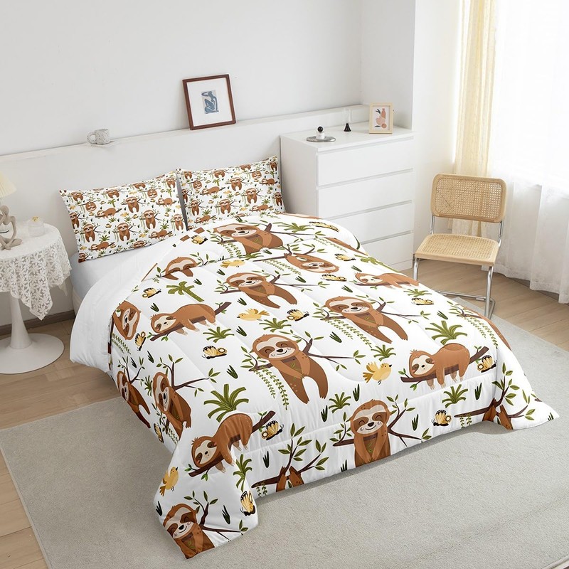 Sloth Comforter Set Full Size, Cartoon Sloth Comforter Set Kawaii Animals Com...