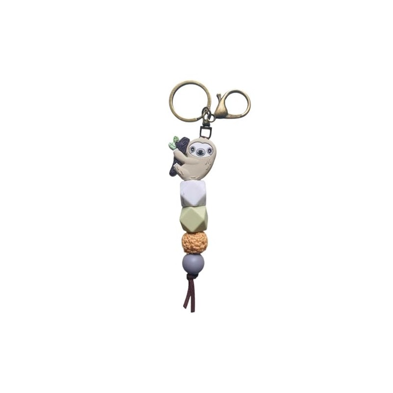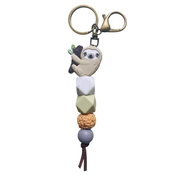 - Material: khaki silicone sloth bead,crochet bead and leather tassel. Lighiweight and durable.