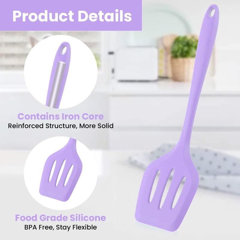 Slotted Silicone Pancake Turner Cookie Spatula High Heat Resistant Slotted Spatula for Fish, Eggs, and More (12 x 1.7 Inch, Purple)