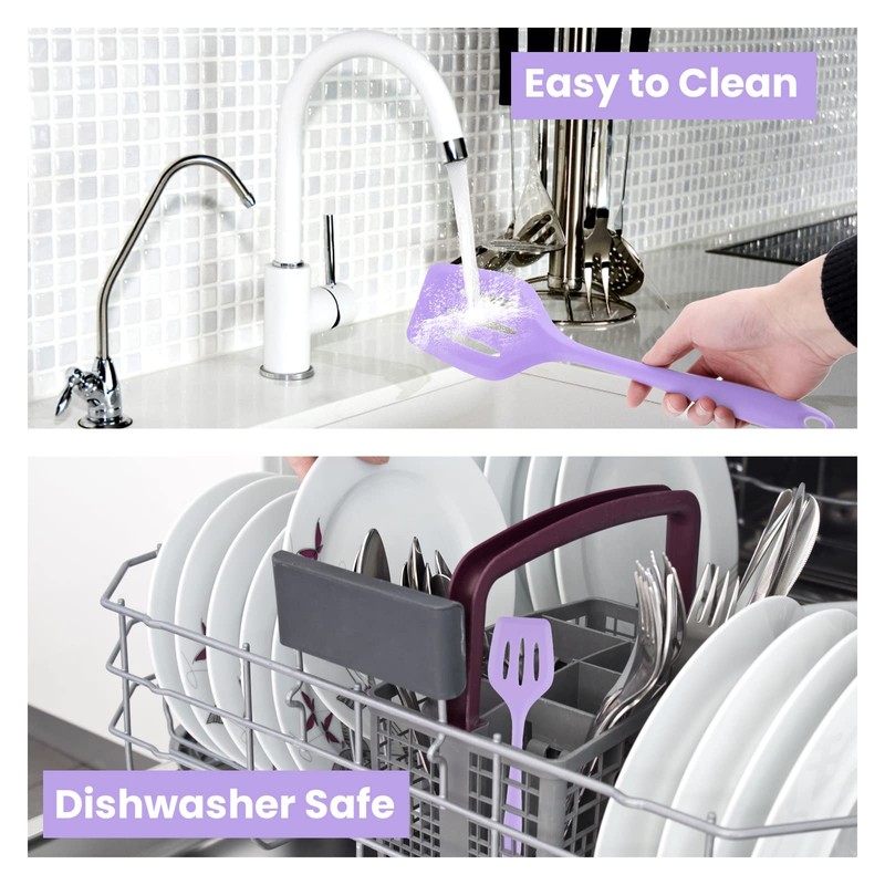 - 【Easy To Clean】Food won't stick to our silicone turner. You can also only take them with hot soapy water or just put them in the dishwasher.