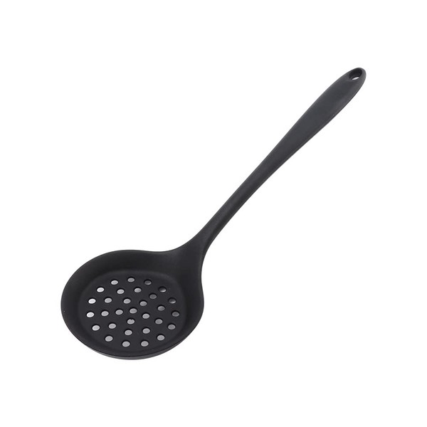 Slotted Spoon, Skimmer Spoon Multifunctional Cooking Spoon Strainer, Non-Stick Cooking Silicone Scoop Ladle with Ergonomic Handle(Black)