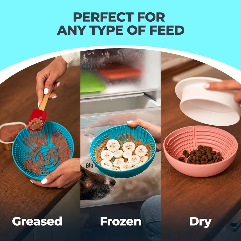 - THOUGHTFULLY DESIGNED LICK BOWL FOR DOGS – Our elevated slow feeder dog bowl has multiple health benefits for your overeating pet – help rid your dog of obesity, stress, and anxiety with this dog lick bowl that will also help your doggy maintain a comfortable posture that does not strain the neck/shoulders.