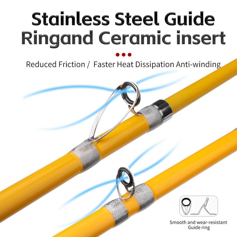- Smooth Performance: Equipped with 6 stainless steel ceramic guide rings to reduce friction for a seamless fishing experience.