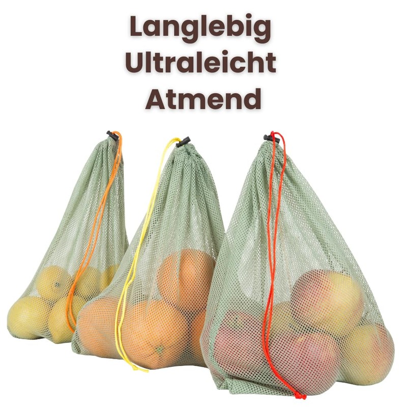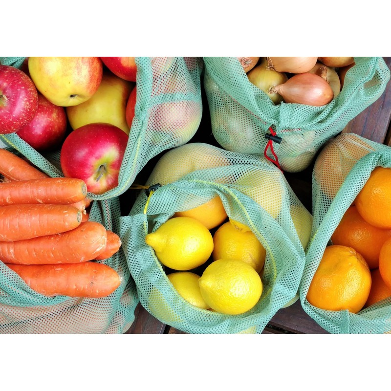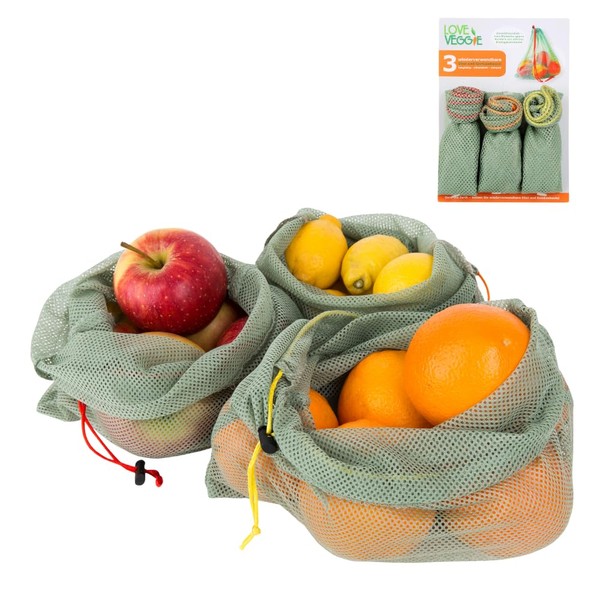 Slowroom 3 Reusable Fruit and Vegetable Bags Langlebieg, Ultralight, Breathable, Polyester, Green