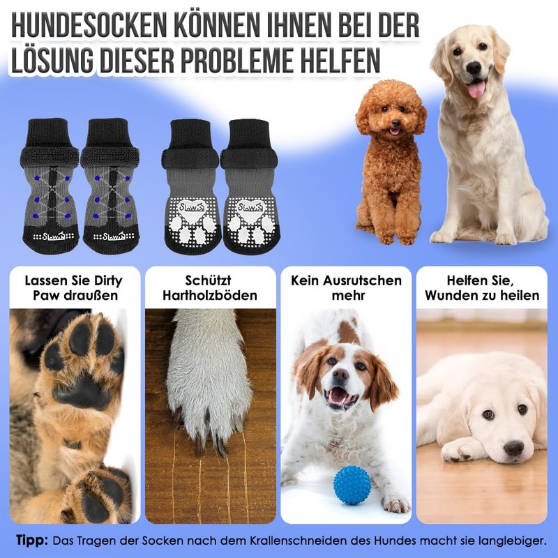 - Cosy comfort: the dog socks are made of soft material with excellent elasticity for dogs of all sizes. The warm and lightweight material ensures that your pet feels comfortable in winter without restricting their freedom of movement. Plus, you no longer have to worry about naughty pets leaving scratches on hardwood floors or sofas. Perfect for indoor use. The non-slip socks are best washed by hand.