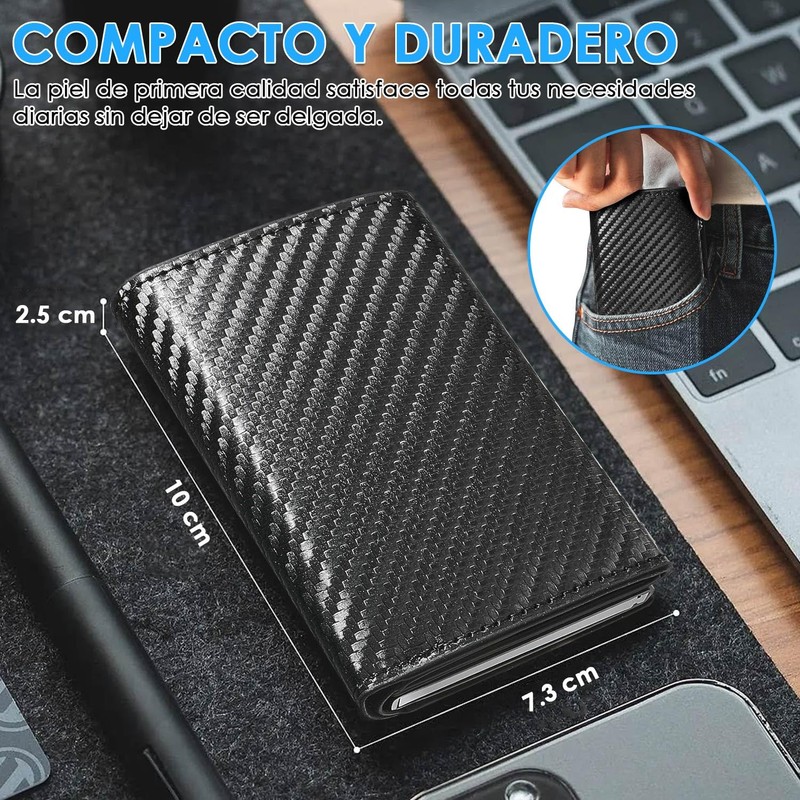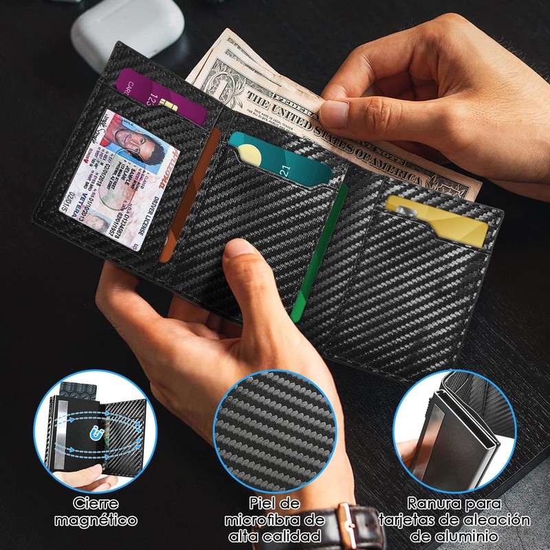 - Protección con bloqueo RFID --- Proteja su información personal y sus tarjetas de crédito con la avanzada tecnología de blindaje RFID, que impide que dispositivos de escaneado no autorizados accedan a sus datos confidenciales.