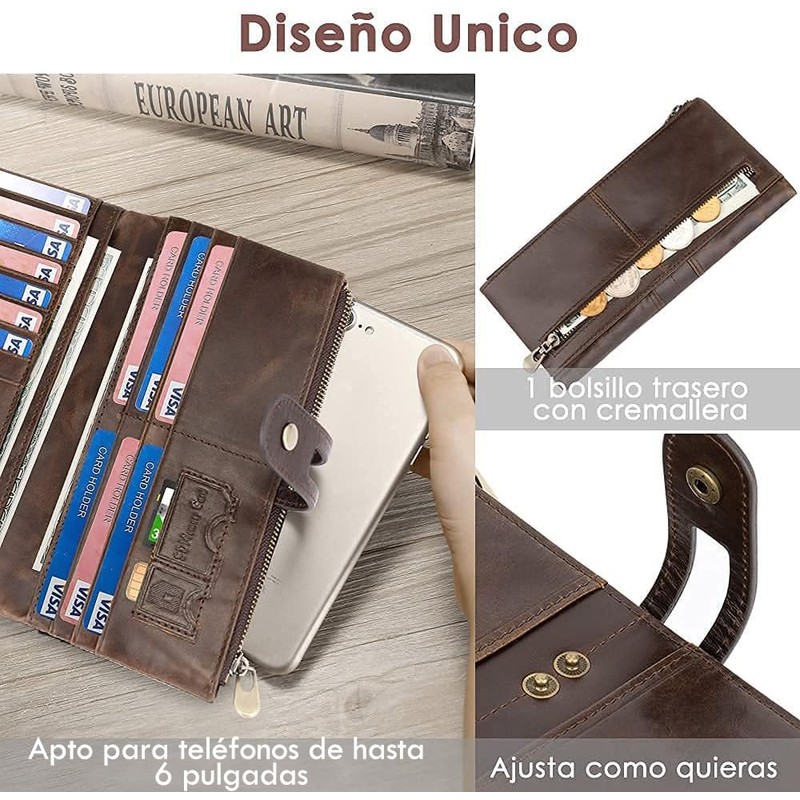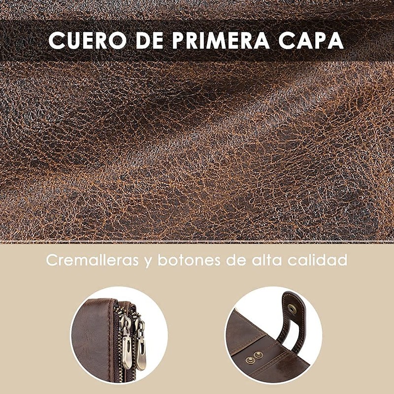 - Cuero de alta calidad y cremallera suave --- Utilizamos especialmente la primera capa de piel de vaca, que es muy resistente y duradera, elástica y no produce arrugas. La textura de cada cartera es única. La cremallera suave también es una característica especial de este producto, que es muy resistente y tiene una vida útil larga.