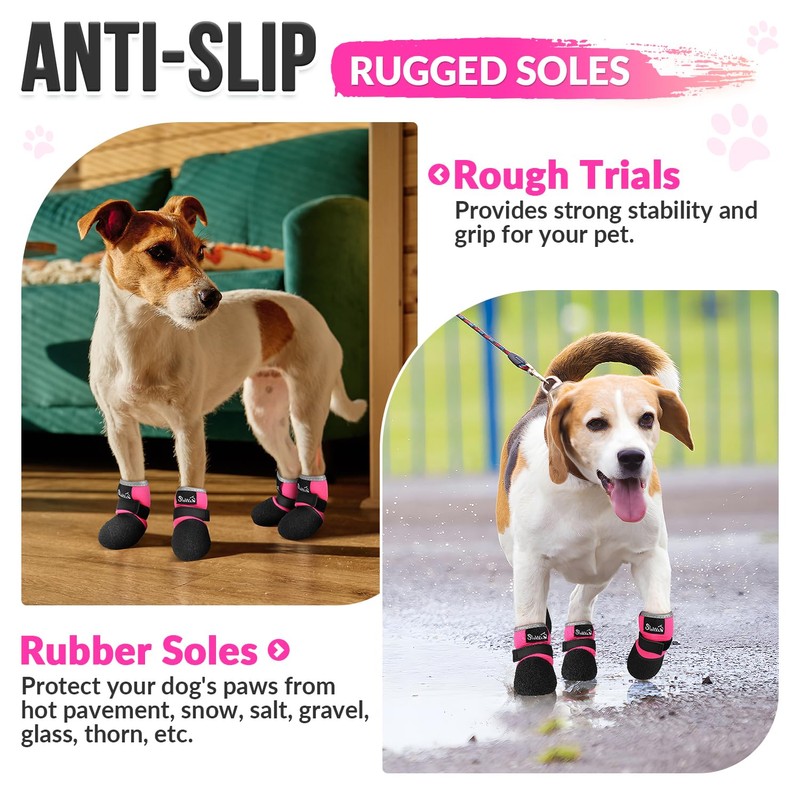 - Secure & Adjustable Fit --- Designed with hook-and-loop straps for easy on-and-off use, these dog boots can be adjusted to fit various paw sizes securely, ensuring they stay in place while playing, running, or walking.