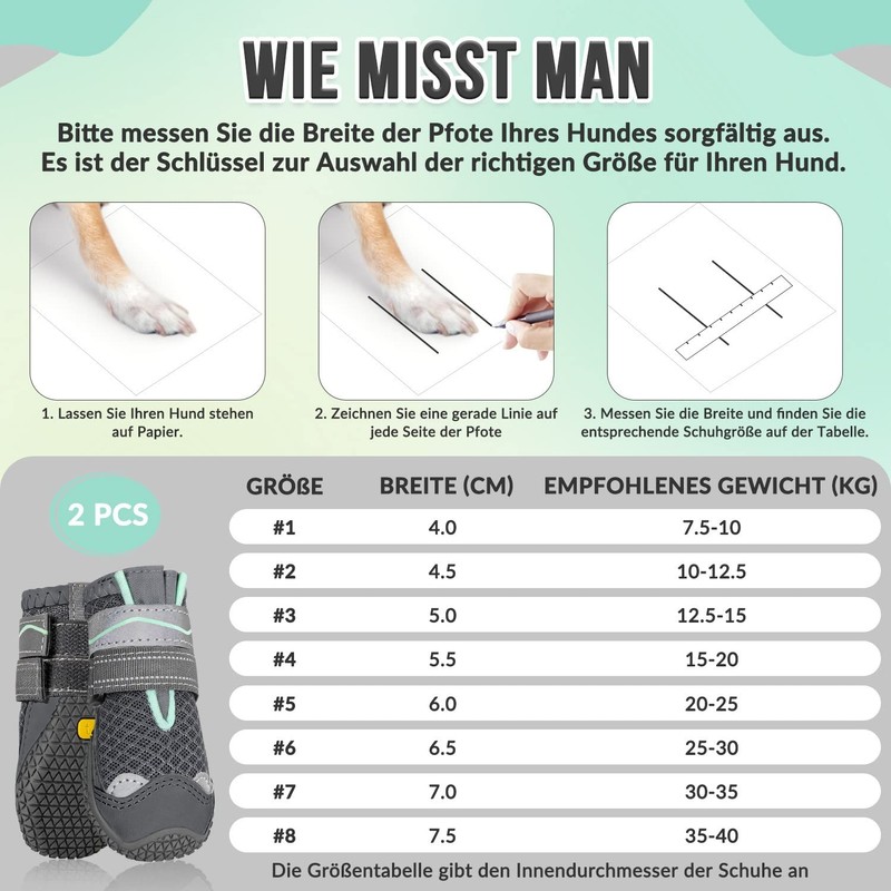 - Breathable and comfortable - The paw protection dog boots have three layers of mesh and premium rubber soles. The design of the dog shoes adapts to the shape of the dog's paw. Our protective dog shoes are soft and comfortable, breathable, not stuffy and do not cause chafing. The dense mesh upper also keeps dirt and debris out and ensures that your dog's paws stay dry and comfortable. Very easy to clean.
