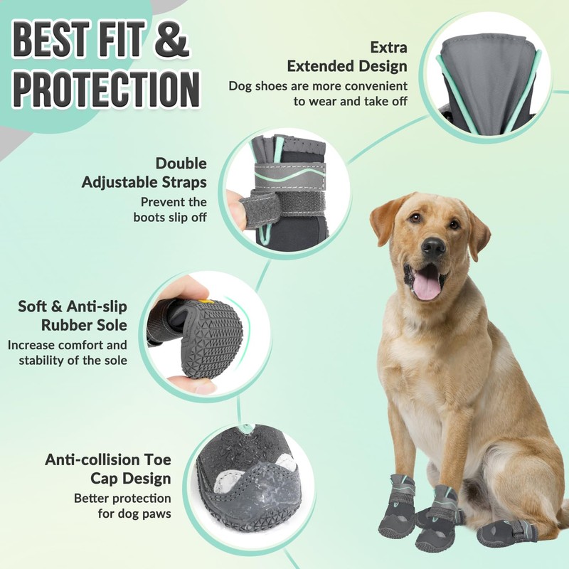 SlowTon Dog Shoes, Paw Protection, Pack of 4 Waterproof Dog Shoes Outdoor with Non-Slip Sole, Reflective Velcro Dog Boots for Small, Medium, Large Dogs, Winter (Grey, Size 2)