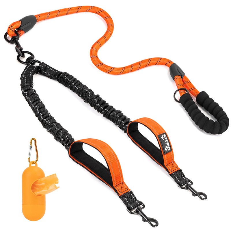 - Shock-Absorbing Bungee: Our double dog lead for walking 2 dogs no tangle features dual shock-absorbing bungee leads that extend between 20-35 inches, providing a comfortable walking experience for your dogs weighing between 25-150 pounds. The elasticity of the dual dog lead ensures that your pets are comfortable and free to move.
