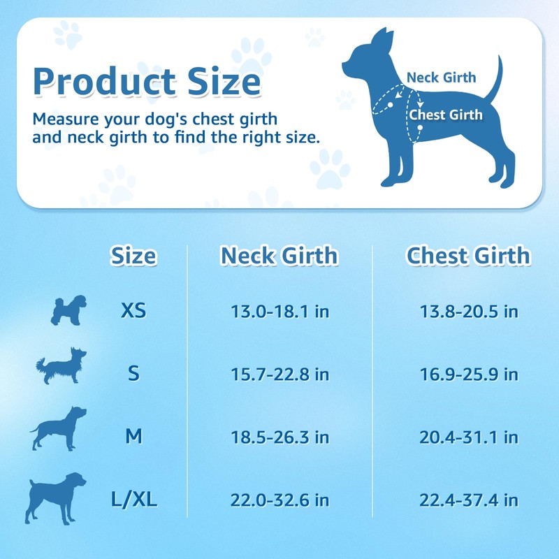 1)Please measure the dog's size and compare it with the size table before purchase!