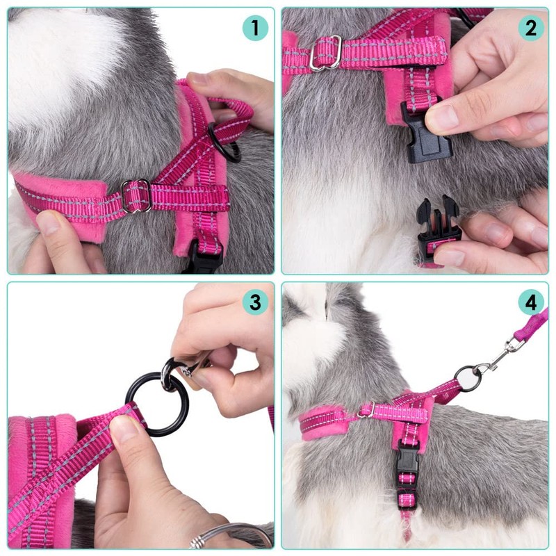 - Soft Velvet Padding & Durable --- With soft thicken and wider fleece pads beneath the strap of dog neck and back, SlowTon puppy vest harness and leash set make sure dog feel comfortable even when pulling. Superior nylon material ensure long lasting use.
