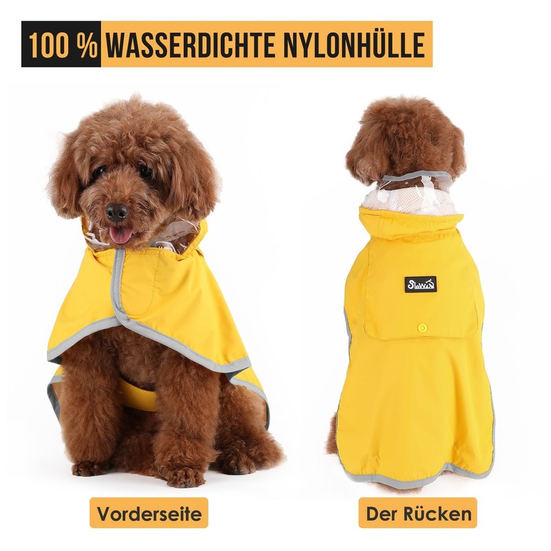 Durch das Tragen dieser Regenponchojacke mit transparenter Kapuze kann Ihr Hund an tristen Regentagen trocken und sauber sowie modisch bleiben. Keine zusätzlichen Aufgaben mehr und kein Wischen der nassen Böden mehr!