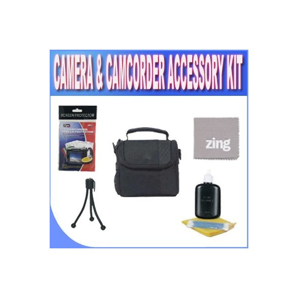 SLR Deluxe Soft Medium Camera and Video Bag + LCD Screen Protectors + Table Size Tripod + Zing Micro Fiber Cleaning Cloth +Camera/Video Cleaning Accessory Kit!!!