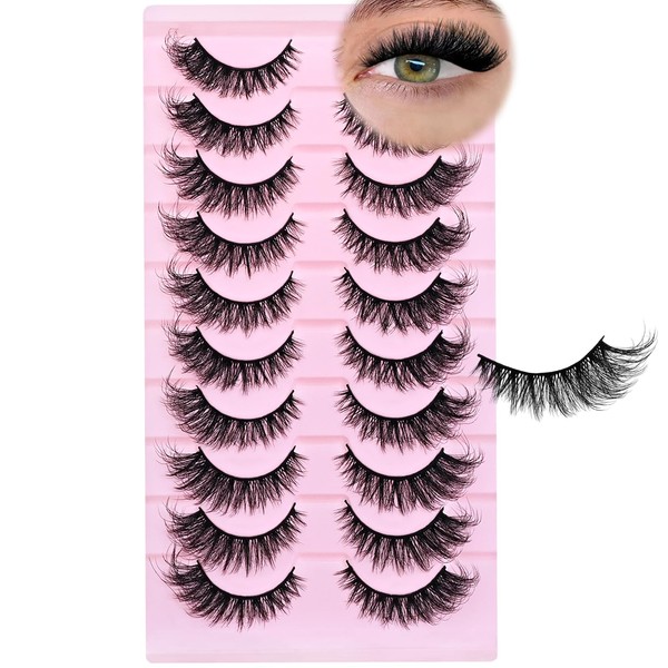 SLSXNL Strip Lashes Natural Cat Eye False Eyelashes Fox Eye Wispy Foxy Lash Extensions 10 Pairs