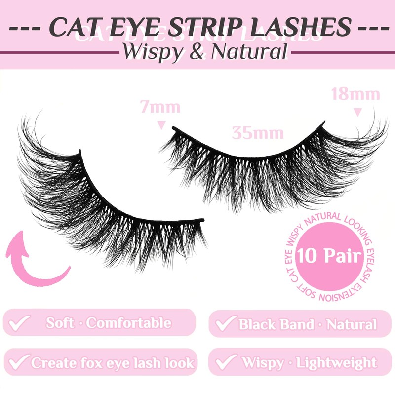 - Cat Eye Lashes: These wispy strip false lashes with cat-eye effect can blend seamlessly with your natural lash line, creating a sexy fox eye look.Starting at a short length and ending at a longer length.That's perfect for daily wear or special occasions