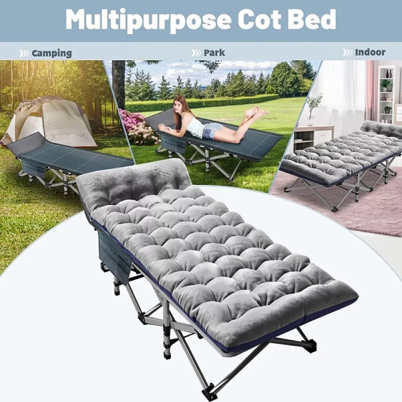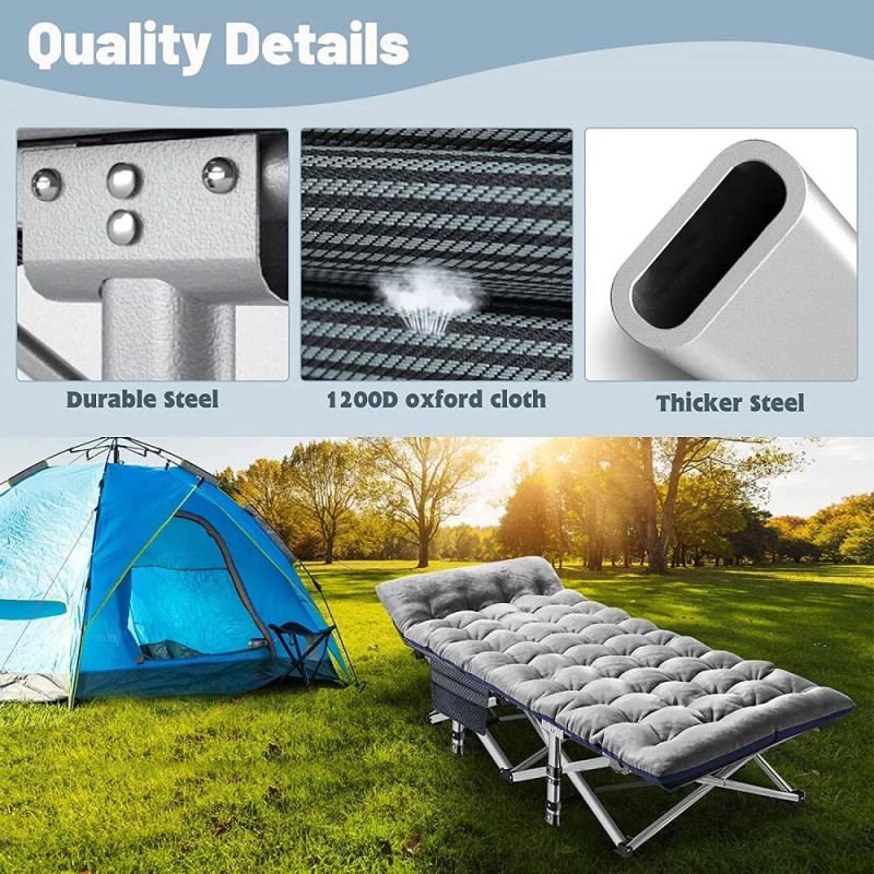 SLSY Camping Cot Foldable Bed Cushion Carry Bag& 4Dpillow Heavy Duty Camping Cot