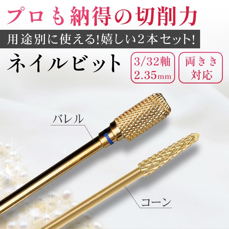 SLTS Nail Bit, Set of 2, Nail Machine Bit, 0.09 inches (2.35 mm), Cuticle Off Drill