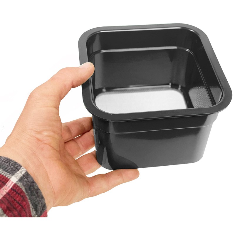 • 6" Square Stackable Mini Sifting Pan. 3.75" deep. Lightweight, Impact Resistant Polypropylene Plastic Construction.