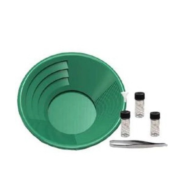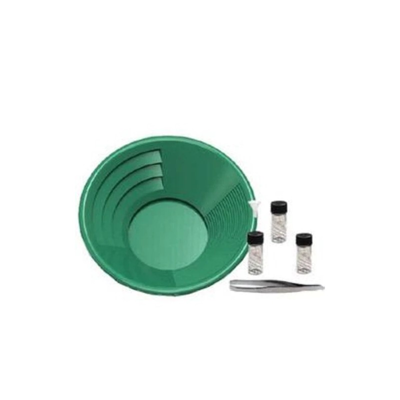 You are buying a 12" Green gold pan panning kit. You get a 12" Green gold pan, 3 Glass vials, Funnel & Tweezer