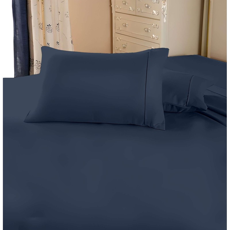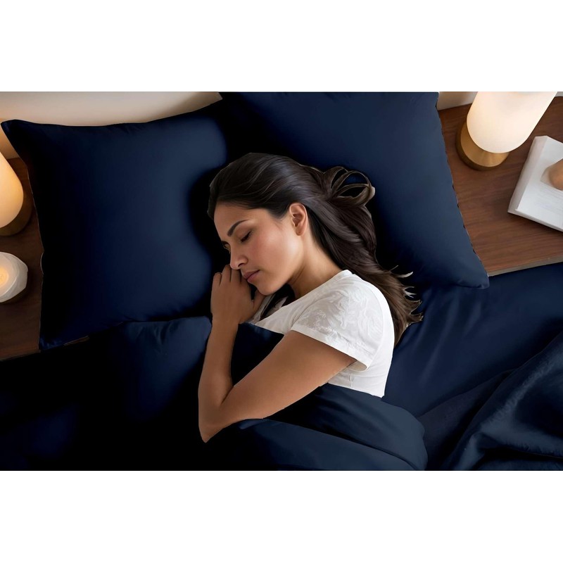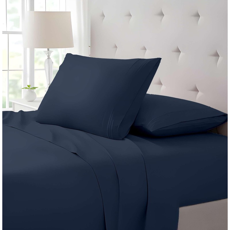 SlumberWell Short Queen Sheet Set 60x75, Cotton 4 Piece Bed Sheets for Short Queen Size Bed, Soft & Breathable, Deep Pocket Sheets Fit Up to 12 Inch Mattress, Easy Fit, Navy Blue Solid