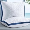 - EXQUISTE DETAILS PILLOWS: Our Pillows are added quilted embossing on front side, it embossed with extra filling to make it more plush, other side is normal side, you will have two choice for your prefer side. Double piping craft with sapphire blue gusseted band design not only give a better look, but also helps hold it's plush shape, won’t flatten out after longtime use. Each details are aim to maximizing its‘ comfort and improving your sleeping experience