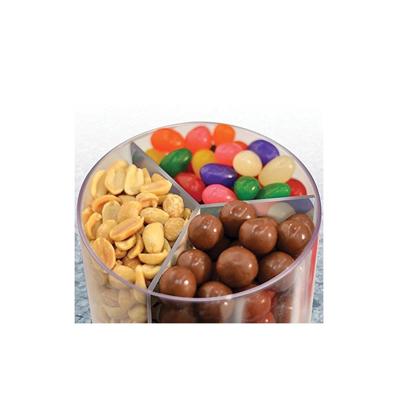 - 3 Different compartments (24oz each). Each Compartment hold about 24oz of candy (3 compartments)