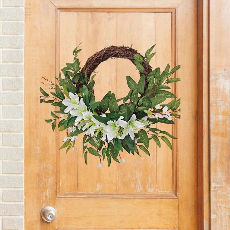 - . 【Lifelike Design】: Crafted from quality PP Rattan, this artificial lily wreath offers a realistic and vibrantly appearance that never fades, ensuring your home decor remains beautiful all year round