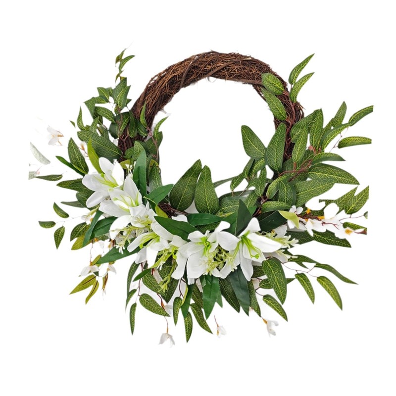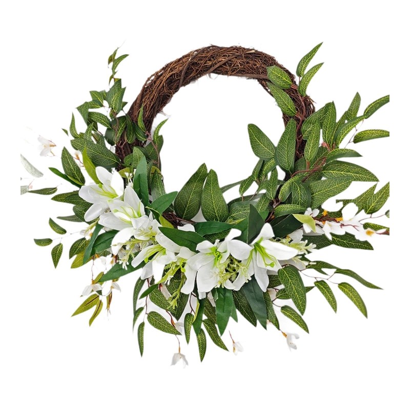 - 【Lifelike Design】: Crafted from quality PP Rattan, this artificial lily wreath offers a realistic and vibrantly appearance that never fades, ensuring your home decor remains beautiful all year round
