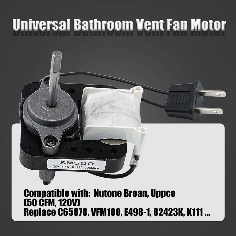 SM550 Universal Bathroom Vent Fan Motor Replacement Kit Compatible with Nutone Bro an, Bay Motors, Sears 569, Uppco (120V, 50 CFM) Replaces# C65878 C01575 VFM100 E498-1 82423K K111 EM550 EM750