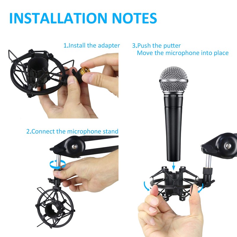 • Sturdy clip - Clip on the shock mount can hold your SM58S mic to prevent the microphone from falling. 180°Ajustable, choose the angle as you like.