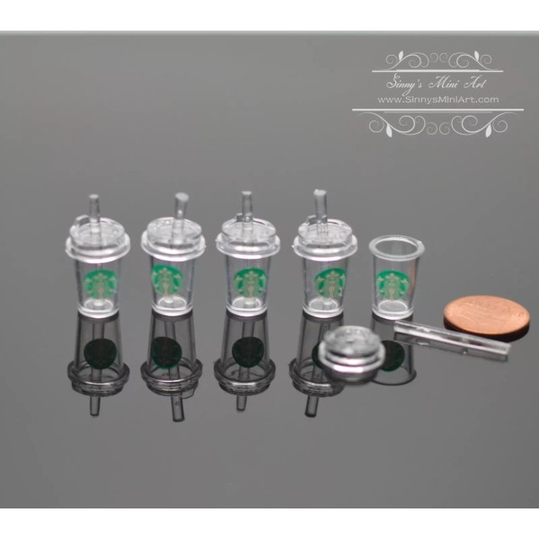 SMA 5 Pieces 1:12 Dollhouse Miniature Coffe Cup with Lid and Straw A121-B