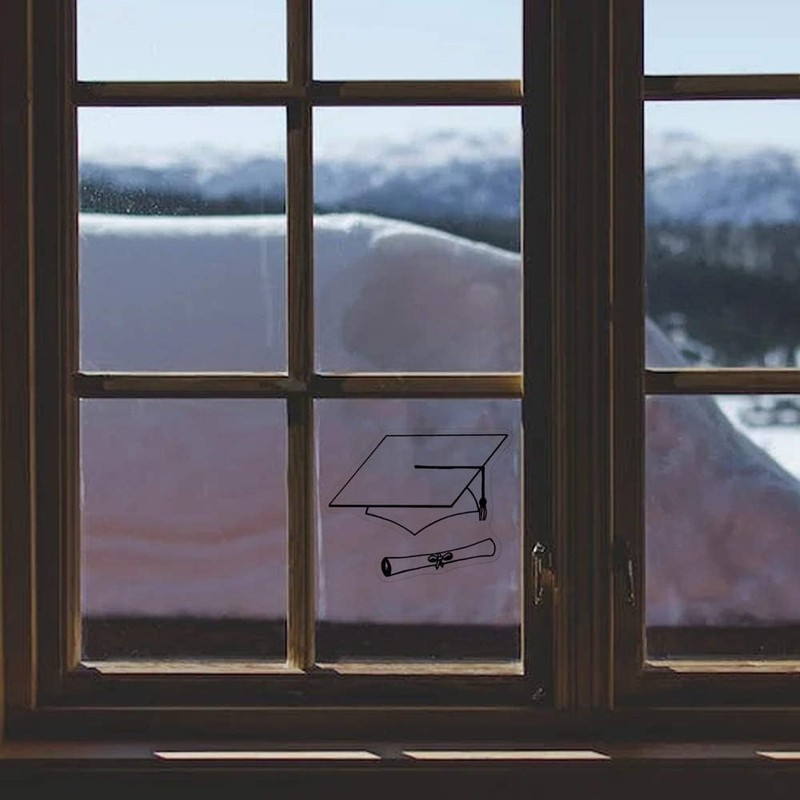 Small 100mm 'Graduation Hat & Scroll' Clear Static Window Cling Sticker/Decal (Black) (WC00061312)