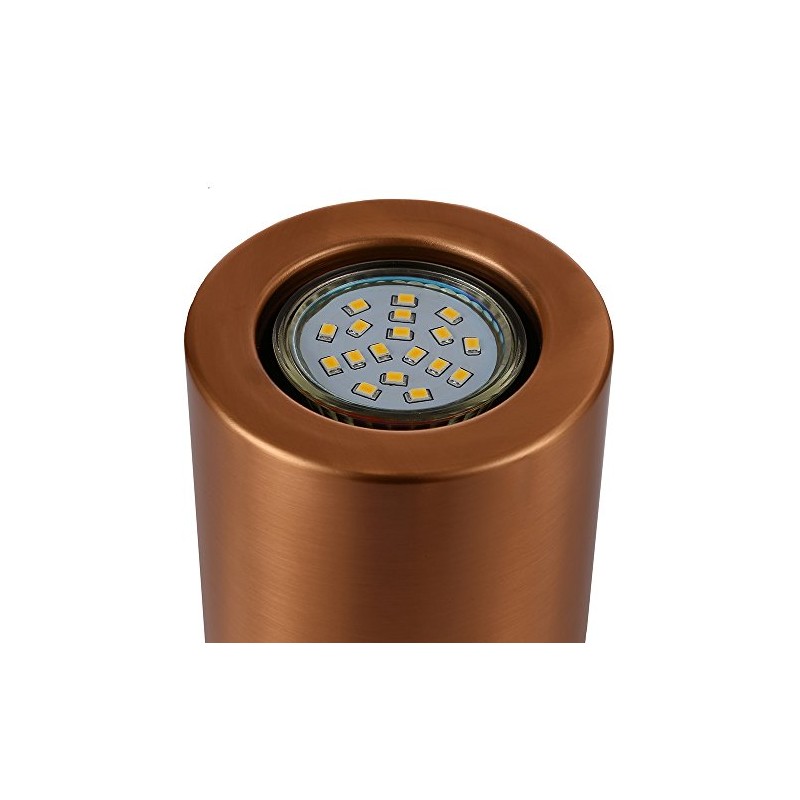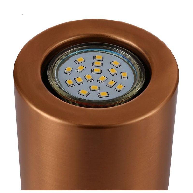 - Useful and contemporary brushed copper mini LED floor or table lamp uplighter.