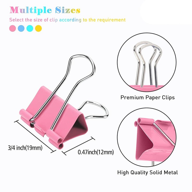 Small Binder Clips, 80 Pack, 3/4 Inch, 0.75 Inch, Standard 19mm, Mulitcolor, Metal Paper Clips, Fold Clamp, Office Clips, with Plastic Container