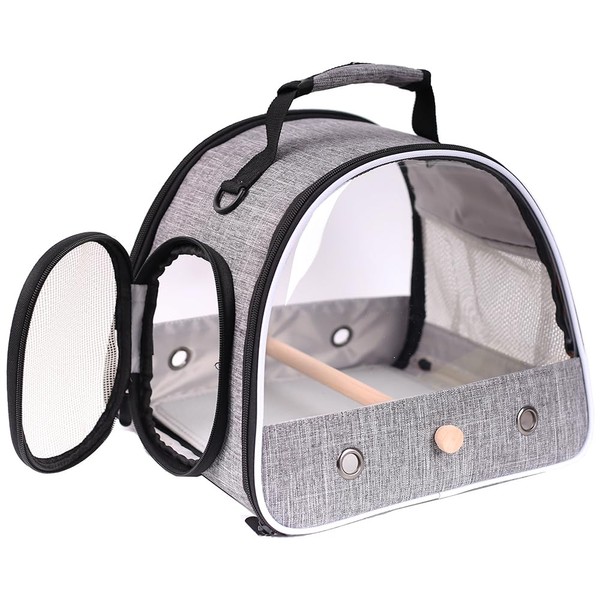 Small Bird Carrier Cage, Carry Bag for Parakeet Cockatiel Conure Parrot to Transport to Vet and Traveling, Clear Windows with Stand Perch Included (Grey)