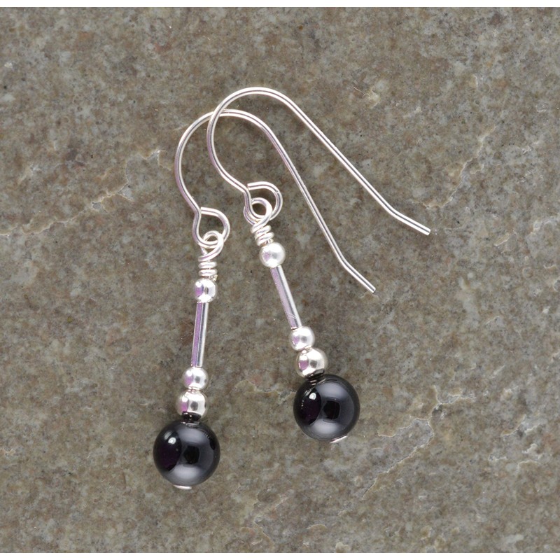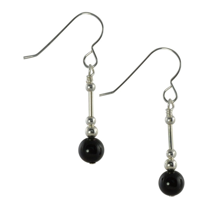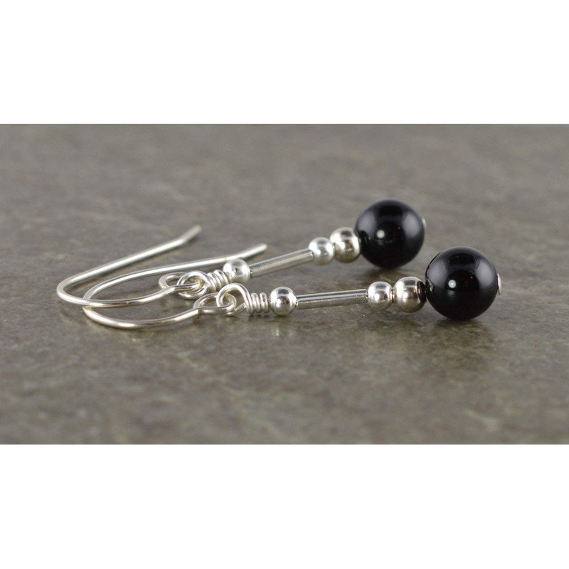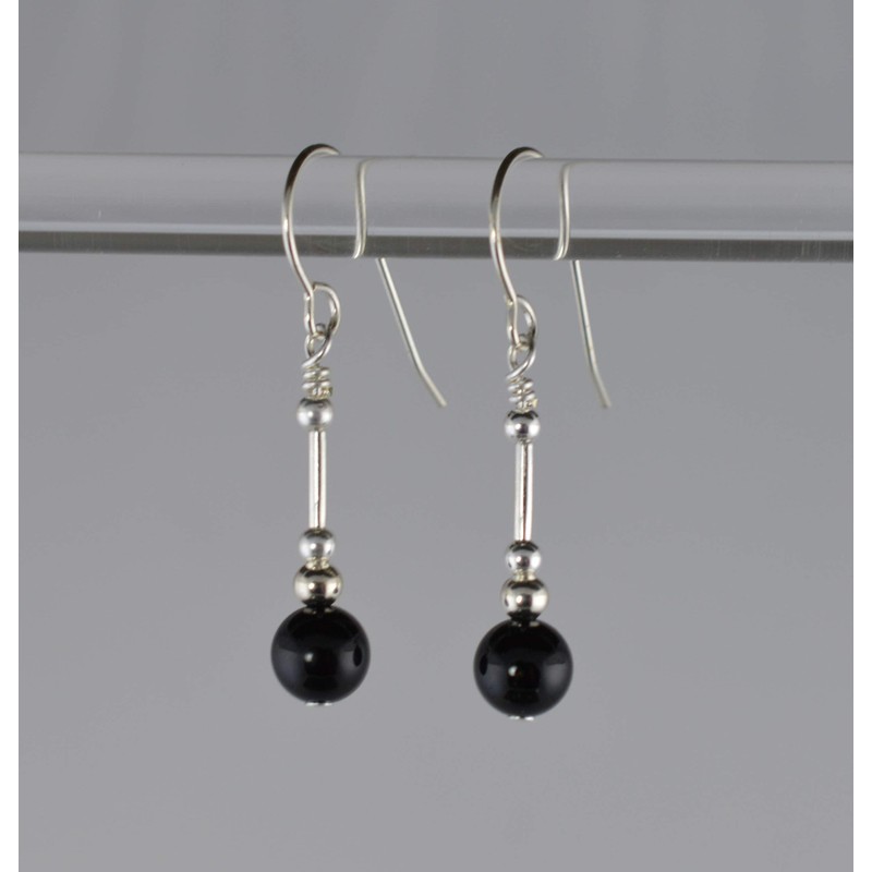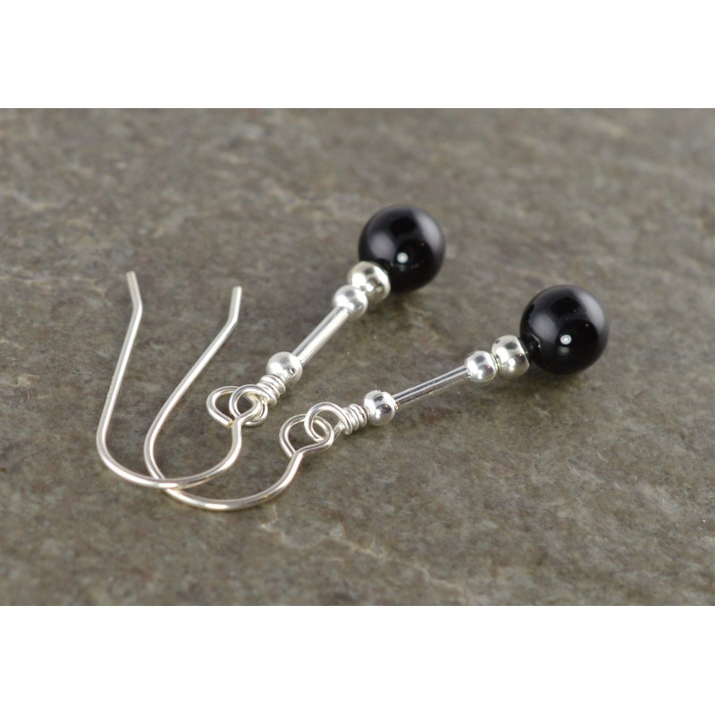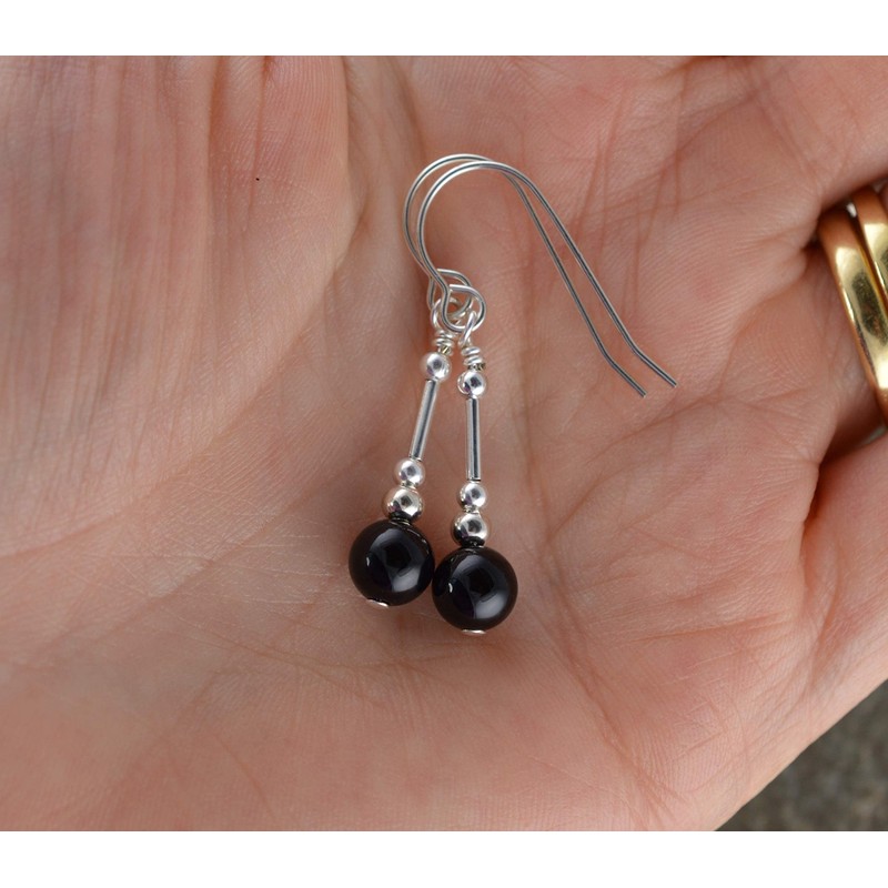 Small Black Onyx Gemstone & Sterling Silver Hook Drop Earrings with Gift Box