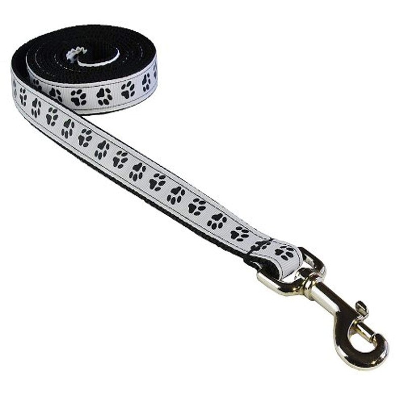 - Small Black/Wht. Puppy Paws Dog Leash: 3/4" wide, 4ft length - Made in USA.