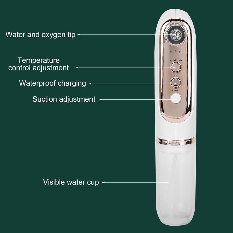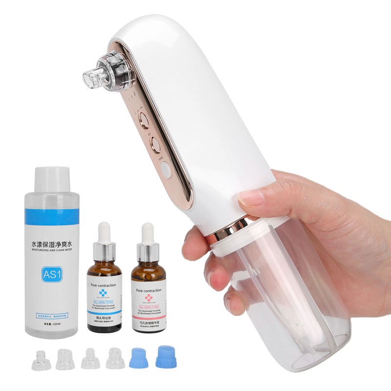 1、High‑power vacuum suction head, three levels of suction, help you completely clear your skin. 2、6 suction heads, replaceable suction heads, different degrees of decontamination, easy to disassemble and assemble. 3、The vacuum suction is variable frequency, and the pressure difference is used to suck out the blackheads from the roots, and clean each pore. 4、Water‑oxygen activating skin is anti‑sensitive, gentler, with nano‑sized bubbles, it is more thorough and effective while washing and sucking. 5、Warm and moisturize, stimulate collagen activity and make skin more tender. 6、Wave‑dissolving type exports the blackheads and gently penetrates into the hair follicles, allowing the blackheads to surface on the skin surface, and the blackheads can be easily exported without squeezing. 7、After removing the blackheads, the pore shrinking water will shrink the skin pores in time, prevent and control the secretion of oil, and block the root cause of blackheads.