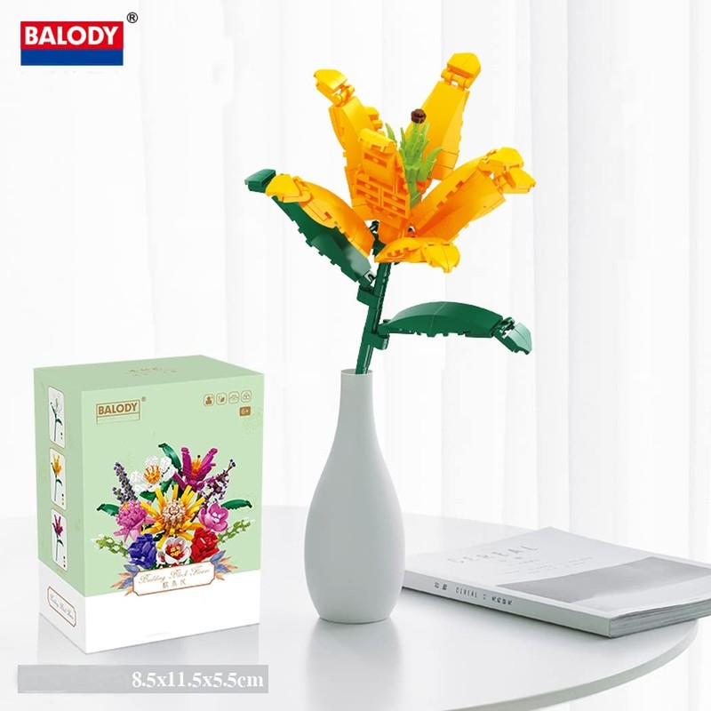 - The size of the finished model is similar to that of a real flower. Several different flowers can be assembled into a bouquet or placed in a vase. Petals, leaves, stems and other details made from blocks inspired by real flowers. The leaves can be moved to make the flower more realistic. The length of the stem can be changed by using more or less parts.