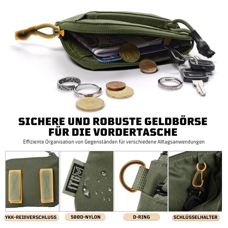 - VERSATILE FUNCTIONALITY Perfect for organizing keys, coins and ID cards, this tactical key bag is ideal for commuting, travel and outdoor activities. Its multifunctional design combines practicality and style.