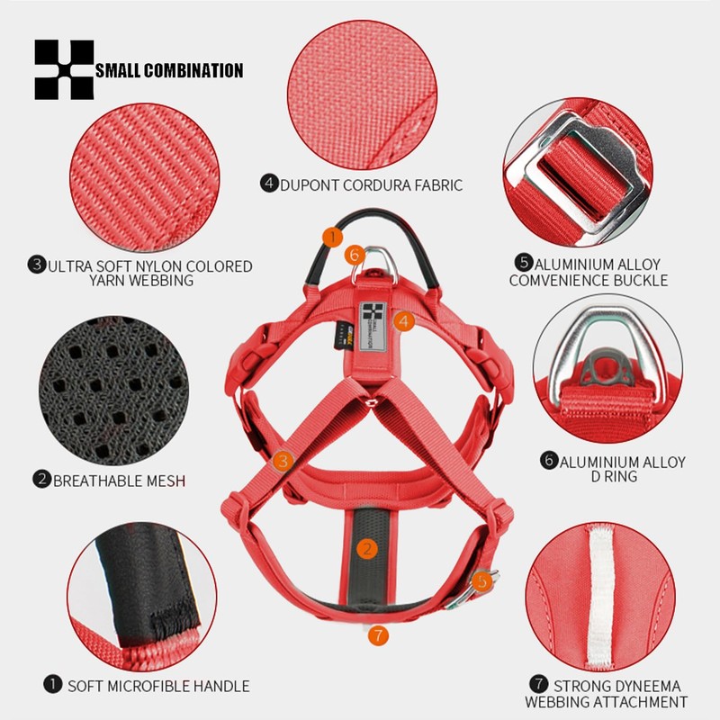 SMALL COMBINATION Dog Harness,No-pull Dog Harness,Adjustable Vest with Durable Handle,Small and medium-sized dog,Outdoor Training Walking (Red, M)