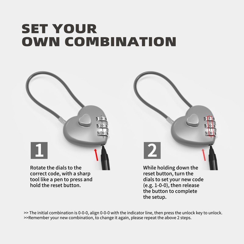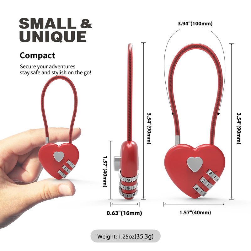 • Secure & Stylish – The UP Security heart-shaped combination lock combines security with a touch of style, perfect for safeguarding your luggage, suitcase, gym locker, or backpack.