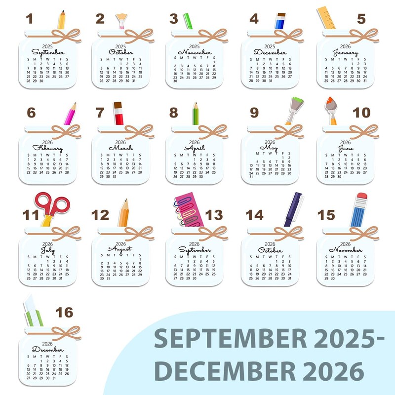 Small Desk Calendar 2025-2026 Monthly Classroom Office Desk Desktop Calendar 2025 16-Month Calendars 2025-2026 September 2025-December 2026