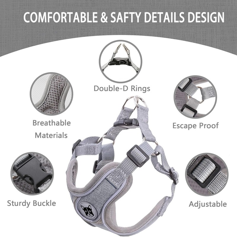 Small Dog Harness with Leash Set,No Pull Adjustable Dog Vest Harness,Easy Walk Dog Collar Harness,Reflective Pet Harness with Padded Handle for Puppy Small Medium and Large Dogs and Cats (Grey, S)