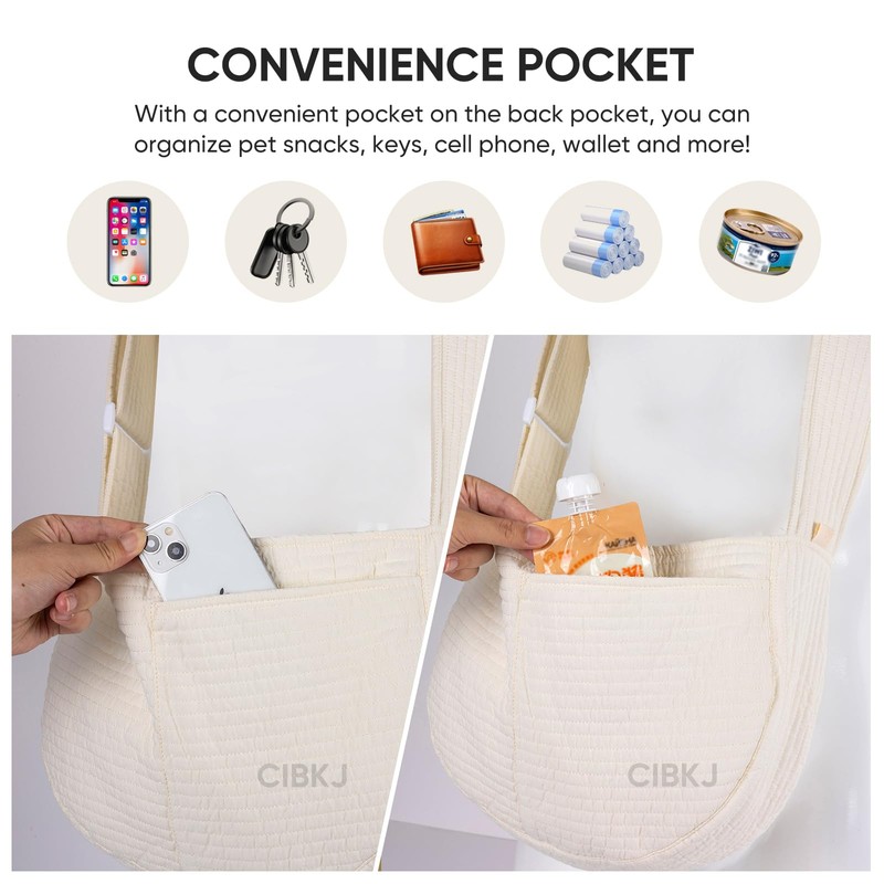 - 【CONVENIENT POCKET DESIGN】There is a convenient pocket on our dog sling, you can put your pet snacks, keys, cell phone or wallet in the dog carrier pocket