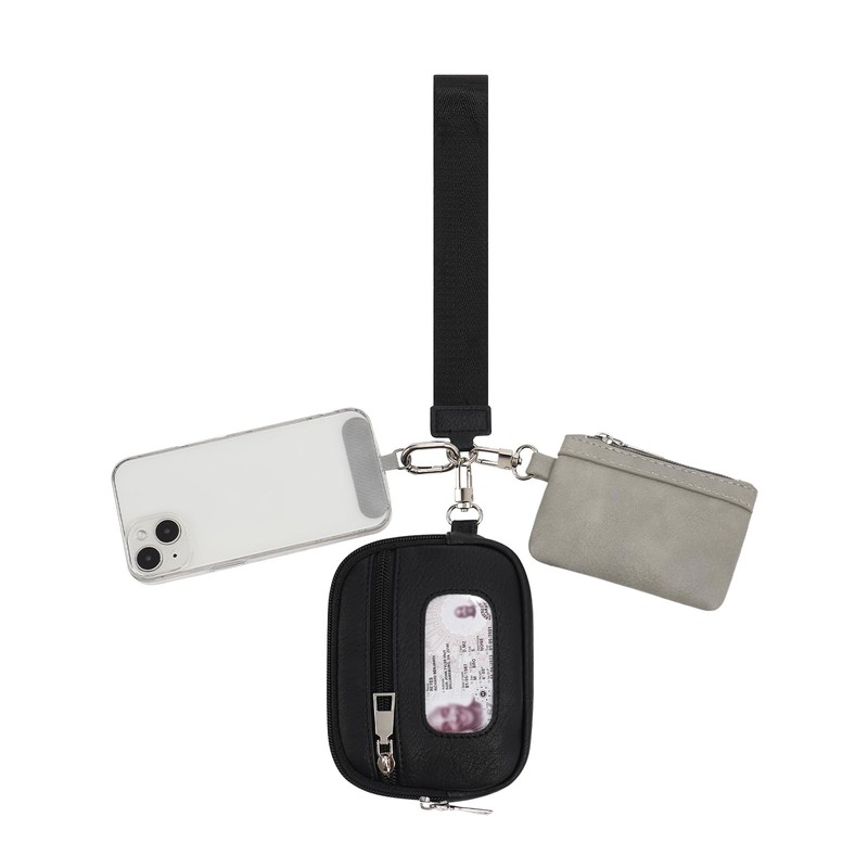 Keychain Wristlet Wallet, Dual Pouch Wristlet for Women