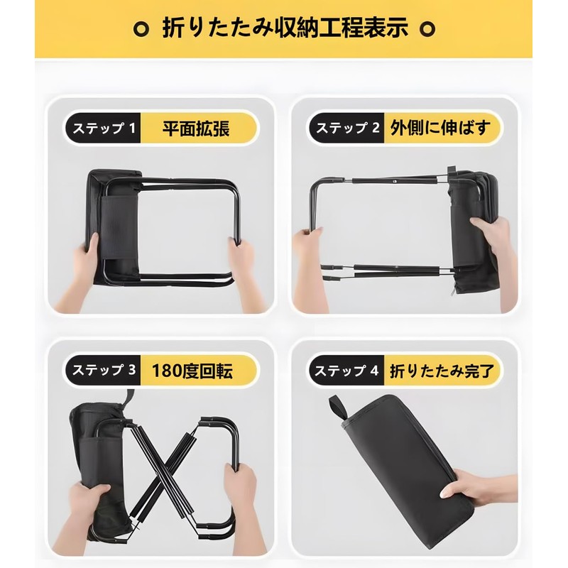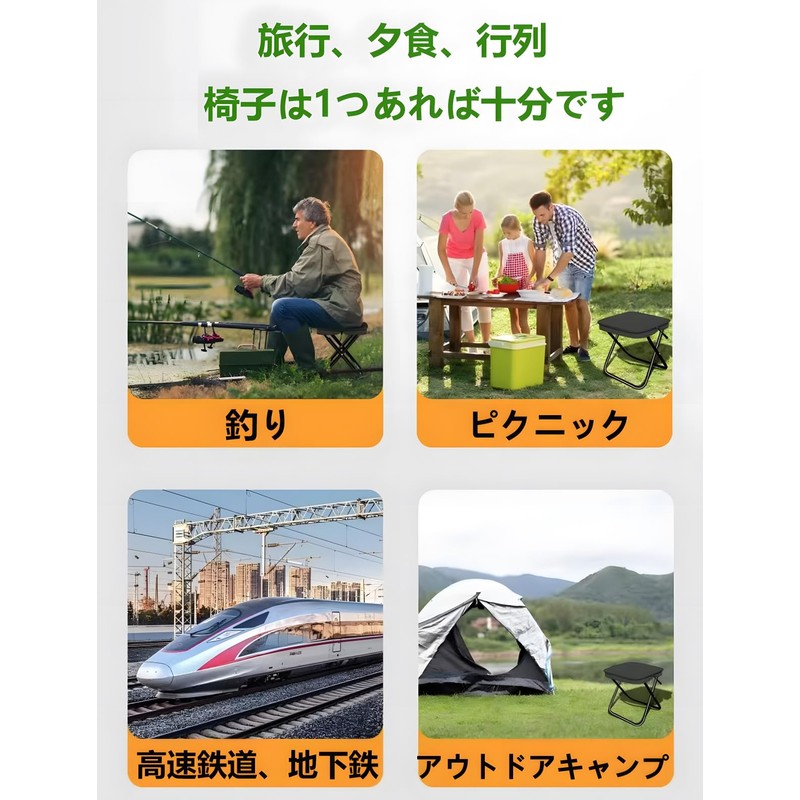 • (Applicable locations) Small and compact, so it can be placed in narrow spaces. It can be used for a wide range of purposes such as camping, flower viewing, fishing, barbecues, sporting events, and more. Not only can it be used as a chair, but also a foot stool for fishing and camping gear storage. Perfect for leisure, entertainment, and children's activities